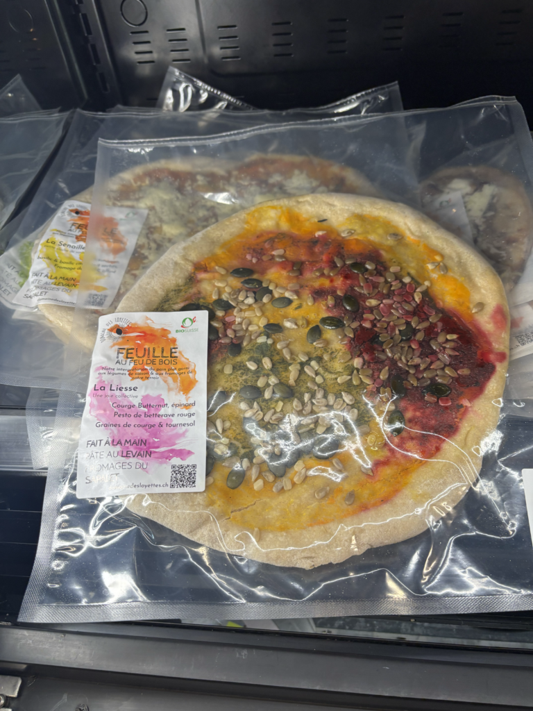 C’est notre interprétation locale de la pizza, faite avec des légumes de saison et du fromage du Sapalet. C’est un véritable « carnaval de saveurs » et de couleurs, avec des mélanges comme le potimarron ou le basilic citron. Ce sont des produits 100 % bio et ultra riches ; quand on croque dedans, on « croque le terroir ».