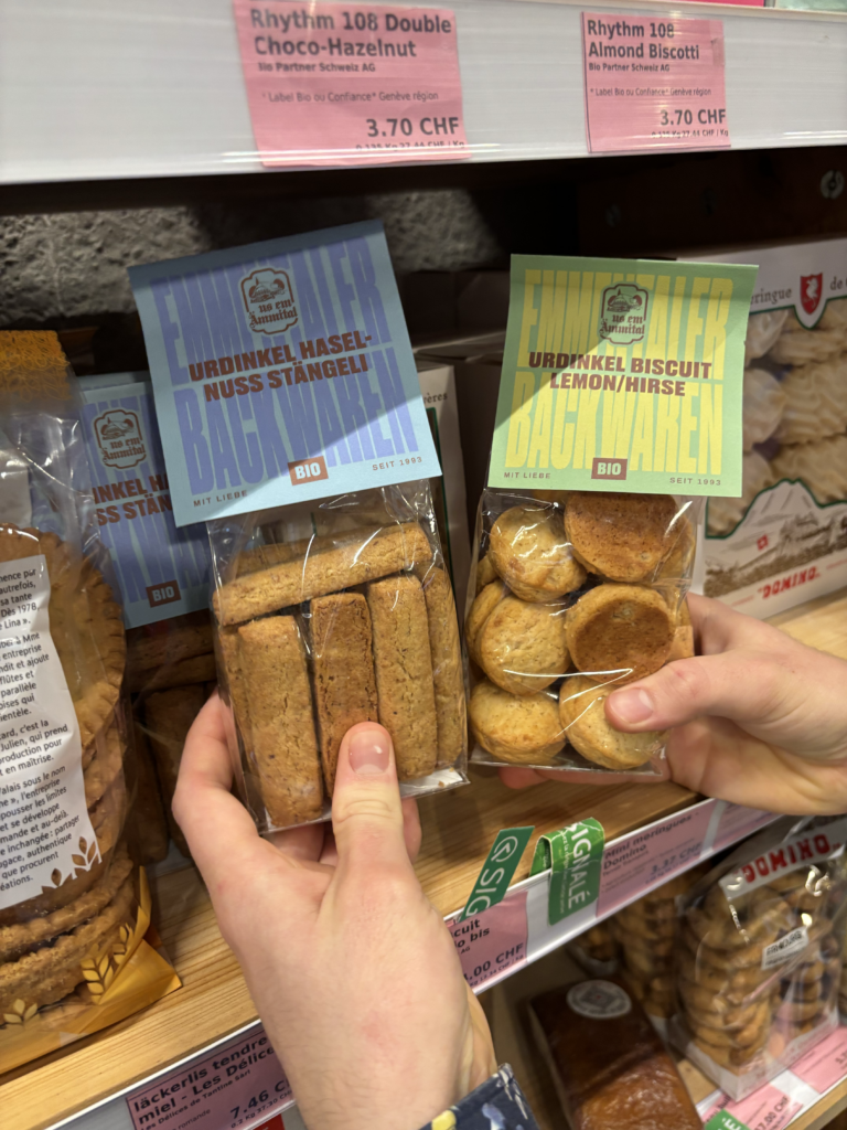 Ils viennent d’un nouveau producteur suisse-allemand et, comme tout ce que j’aime, ils sont « ultra généreux ». Les bâtonnets aux noisettes ont une texture aérienne comme de la meringue avec une explosion de vanille. Et ceux au citron ou à l’orange ont des morceaux de fruits tellement énormes que l’arôme vous reste en bouche pendant une heure ; c’est de la pure gourmandise.