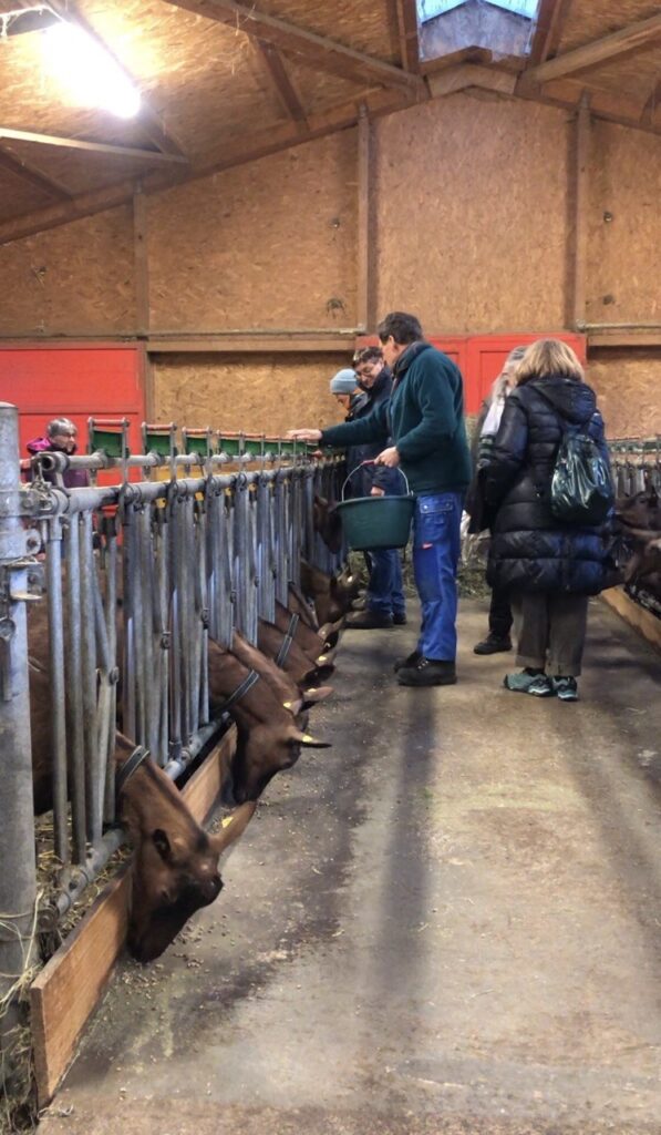 Mardi 17 février une petite équipe du GT Approvisionnement a visité la chèvrerie du champ courbe à Cartigny. Georgette leur a fait une petite visite et au programme il y avait la traite et le biberonnage des cabris.