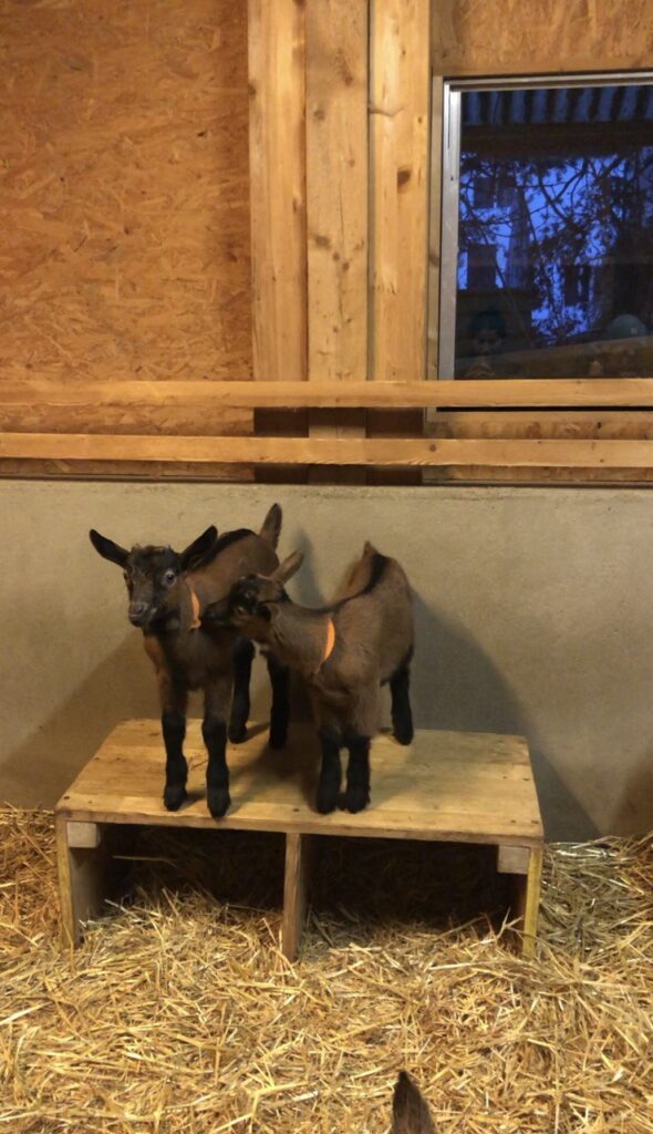 Les cabris sont en train de naitre, ce qui relance la production de fromages de chèvre (que vous trouverez d’ailleurs en rayon pour les amateurs !).